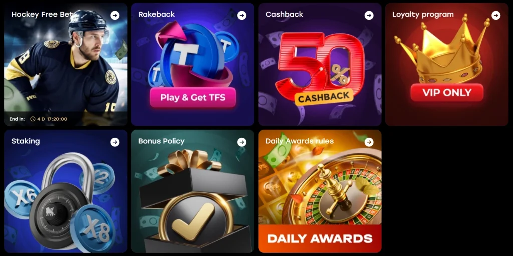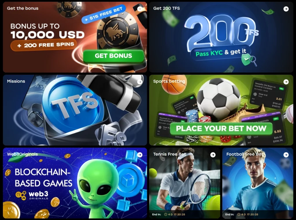 Una de las preguntas más comunes que recibimos es si ofrecemos un Fairspin no deposit bonus o un Fairspin Casino no deposit bonus. Si bien las ofertas de bonos sin depósito son poco comunes y a menudo vienen con requisitos de apuesta muy altos y límites de ganancia estrictos que los hacen casi imposibles de liberar, en Fairspin creemos en las promociones que tienen un valor real. En lugar de un Fairspin no deposit bonus tradicional, nos enfocamos en bonos de igualación de depósito, Freebets sin requisitos de apuesta y promociones de TFS Token que te dan un valor mucho mayor a largo plazo. Nuestra filosofía es simple: darte promociones que te ayuden a ganar de verdad, en lugar de ofertas pequeñas y con muchas condiciones.